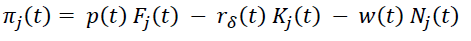 πi (t) = Fi (t) - (r(t) + δk ) Ki (t) - w(t) Ni (t)