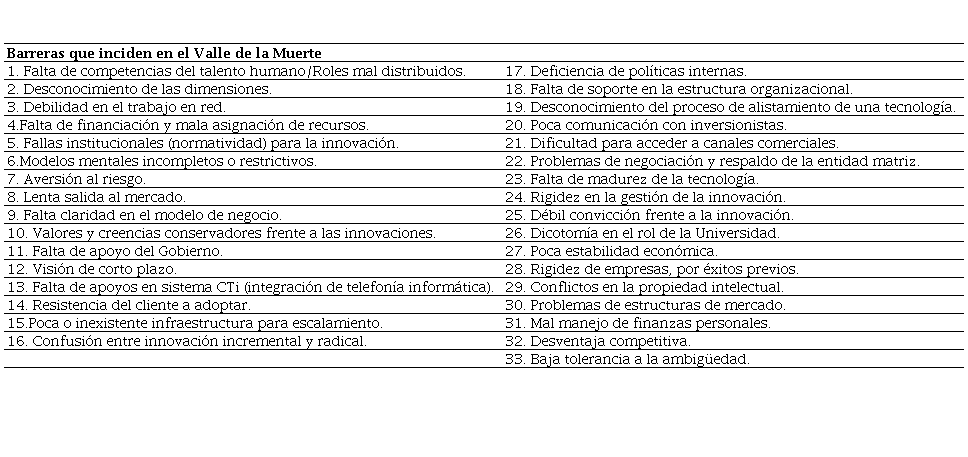 Faltas de competencias del talento humano, ceguera dimensional y trabajo en red son los factores más relevantes para que un proyecto de innovación caiga en el valle de la muerte.