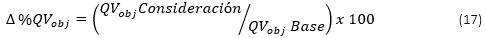 De (14) se generaliza para el cálculo de la variación porcentual del índice QV aspecto objetivo (ecuación 15) e índice QV aspecto subjetivo (16), ver (17).