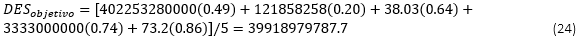 Con base en la Tabla 4, se definieron las cargas que ponderaran el aspecto objetivo (ver Tabla 7).