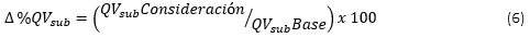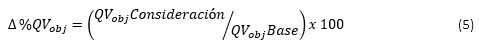 De la ecuación catorce se generaliza para el cálculo de la variación porcentual del índice aspecto objetivo (5) e índice QV aspecto subjetivo (6).