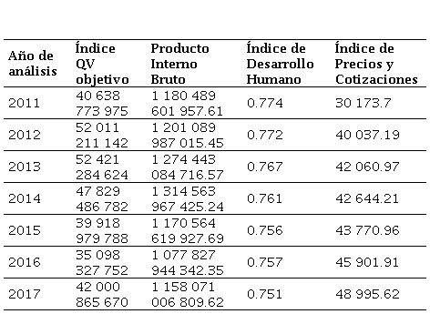 El índice QV es el resultado del cálculo del coeficiente subjetivo y del objetivo. Ambos coeficientes permitirán definir un parámetro del desarrollo económico y social de México para un año en particular.