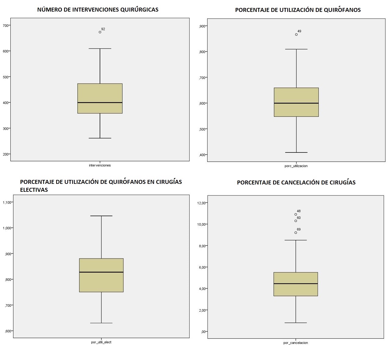 Se considera que el estudio estadístico de los datos recopilados en un sistema o proceso debe permitir analizar cómo se utilizan los quirófanos y el servicio de cirugía, de este modo, descubrir falencias y oportunidades de mejora, introducir nuevos avances y ver su eficacia estudiando la evolución en el tiempo a través de series estadísticas y controles de proceso.