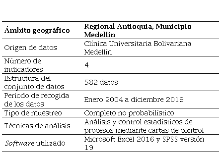 El análisis y el control estadístico del proceso de cirugía se realizó con el programa estadístico Statistical Package for the Social Science (por sus siglas SPSS), versión 19, de IBM. Se igual forma, los datos recogidos para los indicadores se extraen de bases de datos de la institución de salud, las cuales están agrupados en el software Microsoft Office Excel 2016, que además es el medio para la construcción de la propuesta de control de indicadores.