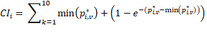 Lafuente et al. (2016) proposed a penalty function to compensate for underperforming pillars (see Equation 2). In this equation, hi,v is the v-th value of the pillar and minp*i,v is the lowest pillar value for the analyzed company (i). The correction function of the pillars, due to the bottleneck, would be given by