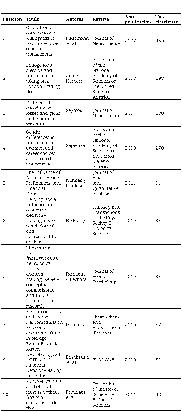 The most important publications on neuroeconomics applied to financial decision-making analyze aspects such as risk profile, investment decisions, and trust, among others.