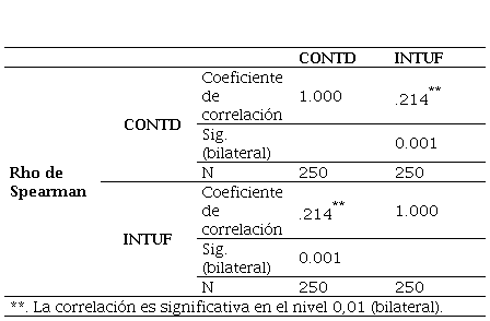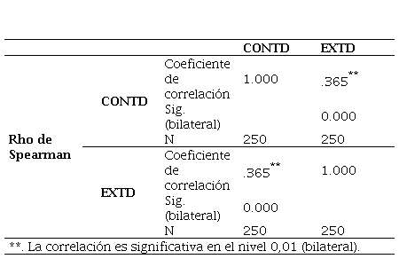 En la Tabla 8 se muestra el p-valor obtenido (0.000), con lo cual se determina la existencia de correlación entre las variables de estudio. También se analiza el coeficiente de Spearman, arrojando un resultado de 0.365, considerado como una correlación positiva débil entre las variables analizadas.