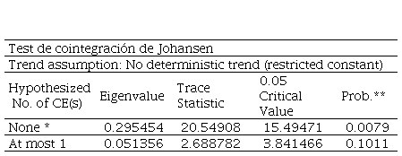 Fuente: elaboración propia* denotes rejection of the hypothesis at the 0.05 levelTable 4. Estimation of the error correction model