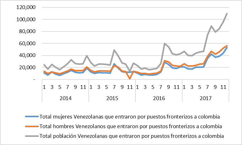 Table 2. Total inferred Venezuelan population: men and women who crossed border checkpoints into Colombia in the months between 2014 and 2017