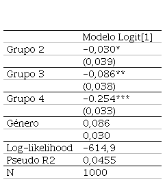 Fuente: elaboración propiaUn dato adicional que arroja el modelo dicotómico utilizado es que, en el conjunto de los datos analizados en las cuatro encuestas, ser hombre parece aumentar en un 8,6 % la probabilidad de ser egoísta (subir el precio), con elevado nivel de significancia estadística. En cambio, no hay diferencias significativas en el comportamiento según la edad y el nivel educativo de los respondientes (Ver tabla 3).