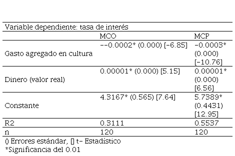 Si bien la propuesta de Dornbusch, Fischer y Startz (2004) es establecer una tasa de interés desde una función de demanda agregada (donde los mercados de bienes y de dinero se encuentran en un nivel de equilibrio), su cálculo para cultura debe ser una propuesta tal y como se muestra en la Tabla 3.