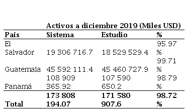 Para validar el ajuste de la teoría del Pecking Order en la determinación de la estructura de capital de los principales sistemas bancarios de Centroamérica entre el período de 2015 a 2019, se recopiló la información de 68 instituciones bancarias que reportan sus estados financieros de manera mensual a las superintendencias bancarias locales. En total fueron 11 bancos salvadoreños, 15 guatemaltecos y 42 panameños. Cabe destacar que de forma previa se realizó una revisión de los datos con el fin de obtener la mayor homogeneidad y consistencia posible en la muestra, omitiéndose aquellas instituciones que no contaban con información completa en la mayor parte del tiempo estipulado en el estudio. Luego, se verificó que este cambio no generara mayor distorsión en la muestra, validando que, para cada uno de los sistemas bancarios, los activos de las firmas excluidas no superarán el 5 % del total de la muestra. La Tabla 2 detalla que la participación de los bancos seleccionados es superior al 95 % respecto al nivel total de activos registrado a diciembre de 2019 para cada uno de los países, razón suficiente para considerar que la muestra es significativa y que no difiere en los resultados de las estimaciones.