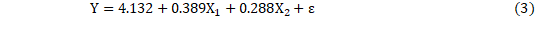 Por último, es importante presentar la ecuación de regresión lineal múltiple que representa los coeficientes y sus betas no estandarizadas para efectos del modelo, de acuerdo a ( 2) y ( 3).