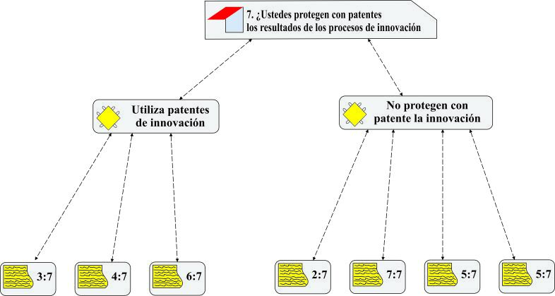 Sobre la protección con patentes de los resultados de los procesos de innovación ( figura 7), el personal que tienen que ver con los procesos de innovación de las industrias manufactureras entrevistadas contestó que algunas de las industrias manufactureras organizadas en Colombia protegen con patentes los resultados de los procesos de innovación; sin embargo, las empresas pequeñas y poco organizadas no lo hacen.