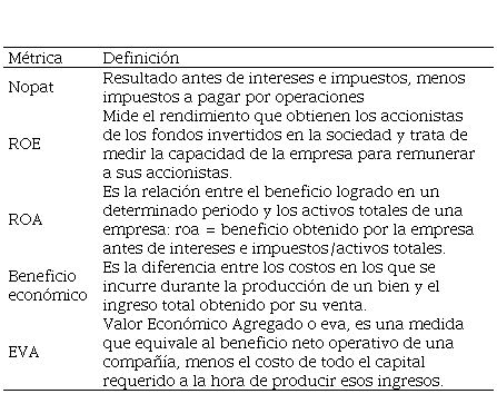 La literatura reporta diversos métodos para medir la creación de valor de forma financiera, los cuales pretenden medir cuantitativamente la rentabilidad y los beneficios obtenidos por todos los recursos invertidos en las organizaciones. Estos se relacionan a continuación, en la tabla 1.