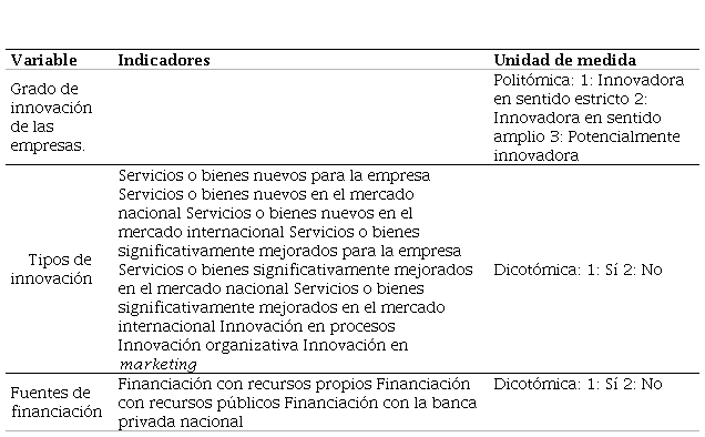 Fuente: elaboración propia.Table 2. Innovative and innovation-active firms
