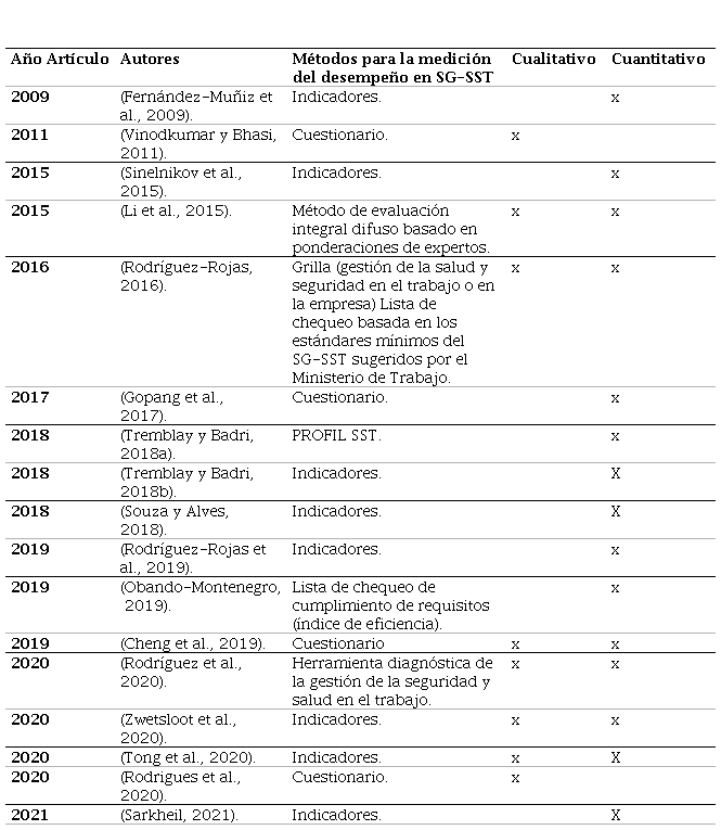 Medición del desempeño del sistema de gestión de seguridad y salud en el trabajo: revisión sistemática de literatura