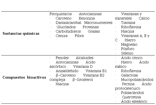 García-Santoyo et al. (2020); Prakash Maran et al. (2017); Cid-Ortega y Guerrero-Beltrán (2016, 2012) y Hirunpanich et al. (2006) encontraron en sus investigaciones, donde estudiaron las propiedades funcionales de la flor de Jamaica, que los extractos de los cálices contienen una gran cantidad de sustancias químicas (fitoquímicos, vitaminas, minerales y macronutrientes) y compuestos bioactivos (ver Tabla 1), los cuales pueden ser utilizadas en beneficio del ser humano, como: alimentos, usos medicinales y prevención de la salud (Da-Costa-Rocha et al., 2014; D’Heureux-Calix y Badrie, 2004; Saeed et al., 2008).