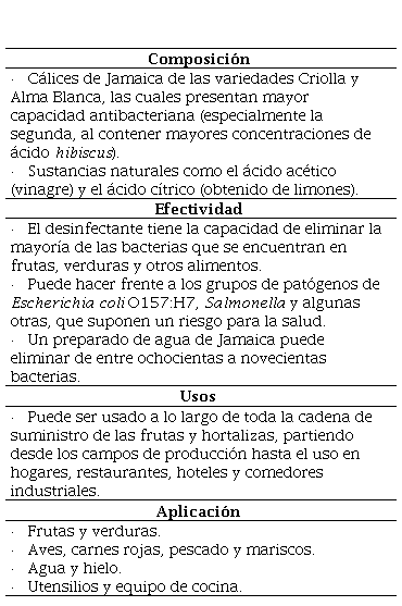 Desinfectante de alimentos a partir de los cálices de la flor de Jamaica