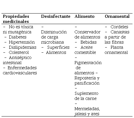 La flor de Jamaica tiene diferentes alternativas de aplicación, lo cual hace que la opción de usarse como desinfectante compita con el uso medicinal, como alimento e, inclusive, de manera ornamental, lo cual lo podemos ver en la Tabla 4.