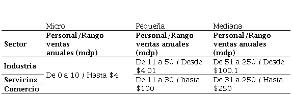 Por su parte, en México el Instituto Nacional de Estadística y Geografía (INEGI) ha establecido una clasificación con base al número de empleados, sector de atención e ingresos anuales (ver Tabla 3).