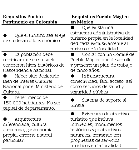 A continuación, se enlistan los requisitos para obtener y mantener el reconocimiento de Pueblo Patrimonio en Colombia, así como de Pueblo Mágico en México (ver Tabla 5).