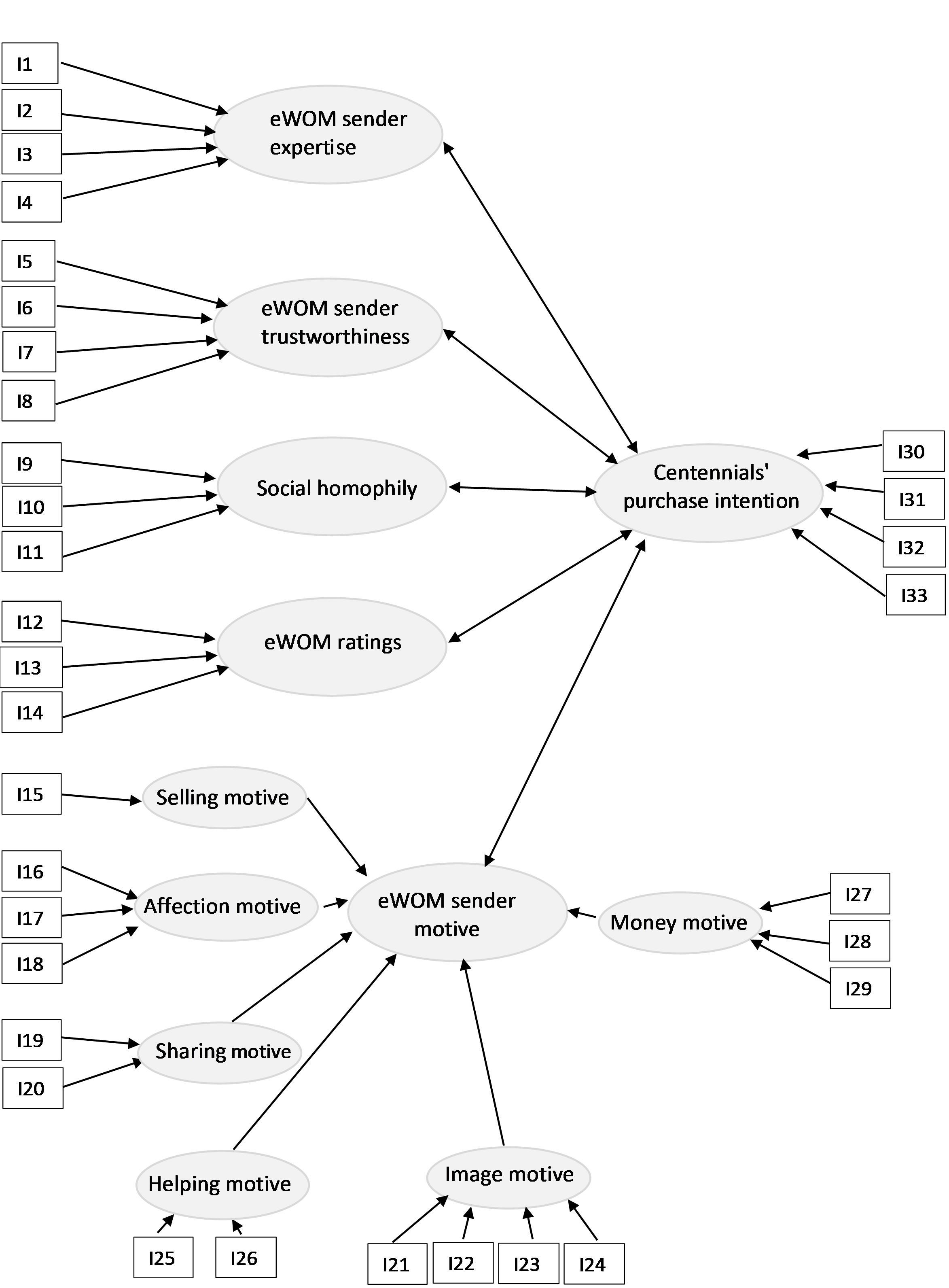 This study focuses on analyzing the relationship between eWOM sender credibility and centennials’ purchase intention. Credibility should not be considered an intrinsic characteristic of an object, person, or piece of information, but rather the perception of a quality (Lis, 2013; Tseng & Fogg, 1999). Lis (2013) developed a reference framework where she defined in detail the factors that determine eWOM credibility from the user’s perspective. To this end, she relied on three main models. The first model is the sender credibility theory by Hovland et al. (1953), in which credibility is defined as a function of the expertise and trustworthiness of the sender. The second model is the sender attractiveness theory by McGuire (1985), which suggest that credibility depends on how much affinity the receiver feels towards the sender (social homophily). Lastly, the third model is the dual process theory by Deutsch and Gerard (1955), which contributes eWOM ratings as a determining factor. To this framework by Lis (2013), one fundamental factor of eWOM credibility was added in this study: sender motive.