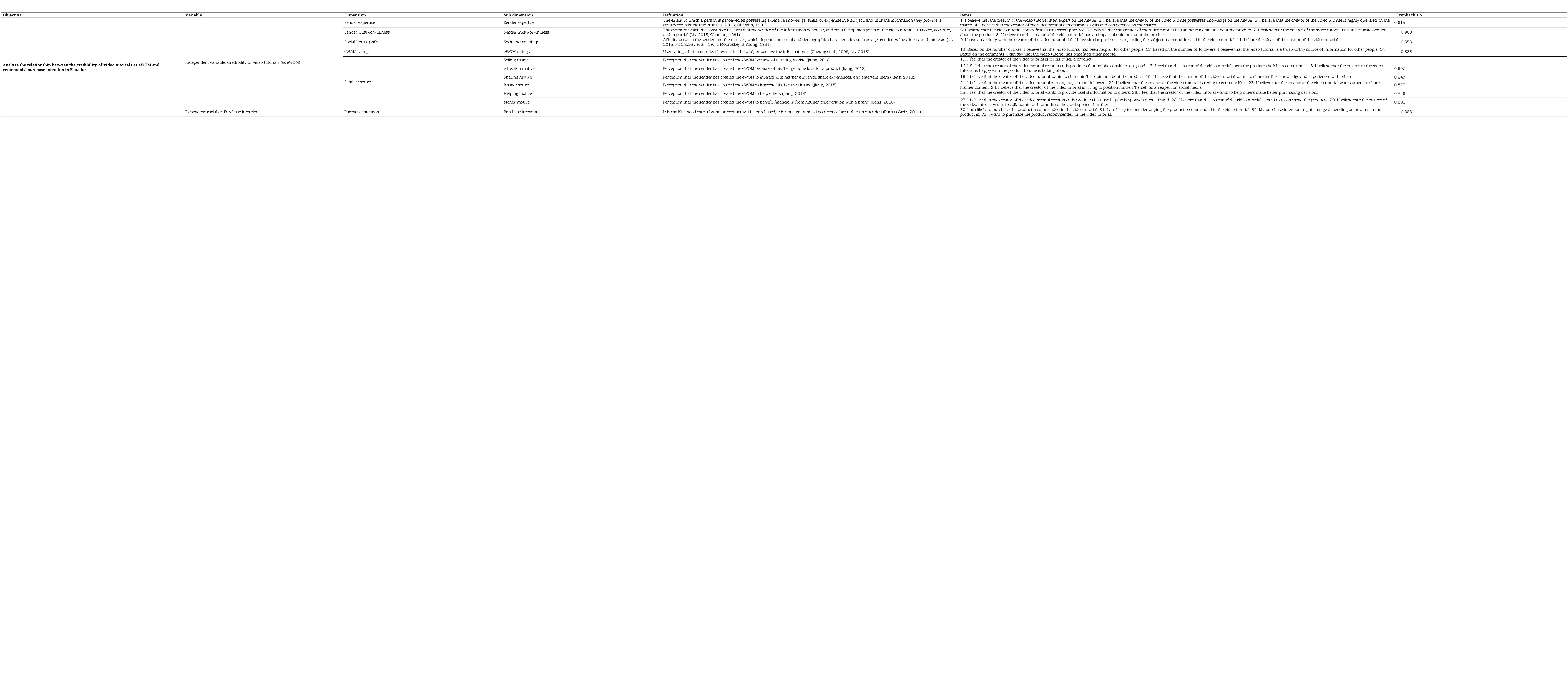 This question is relevant today because it pays special attention to a type of user-generated content that is being increasingly used to induce or encourage the purchase of products and brands among centennials. From this question stems the objective of the present study, which is to analyze the relationship between the factors that determine video tutorial source credibility and centennials’ purchase intention.