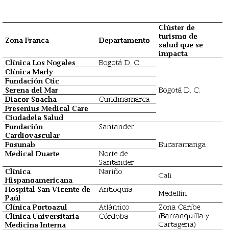 Table 5. Healthcare free trade zones in Colombia