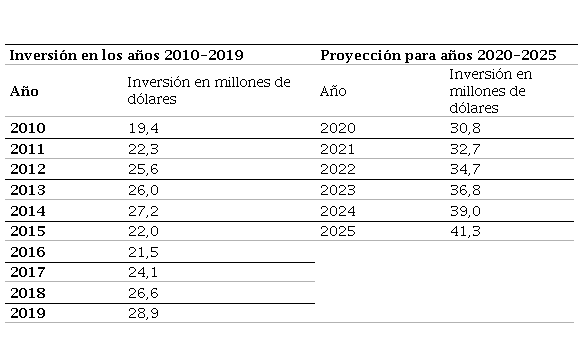 Table 6. Public investment in health from 2010 to 2025