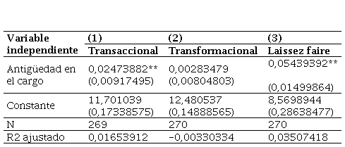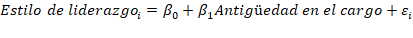 Para analizar el efecto que tiene la antigüedad en el cargo y en los estilos de liderazgo, se propuso el siguiente modelo (ecuación 3):