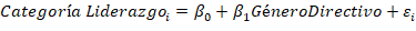 Para evidenciar si existe algún efecto del género del directivo en las categorías de liderazgo, se propuso el siguiente modelo (ecuación 2), el cual se ajusta a los valores de cada categoría de liderazgo: