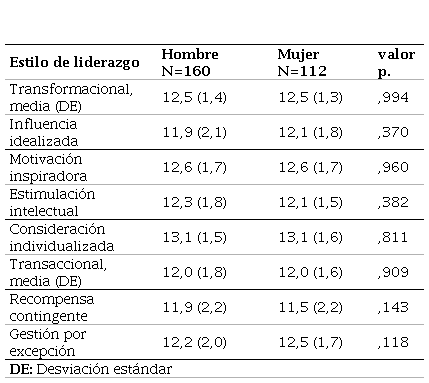 Fuente: elaboración propia.Table 5. Comparison of leadership style scores according to manager gender