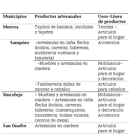 Table 3: Description of artisanal products in the Department of Sucre