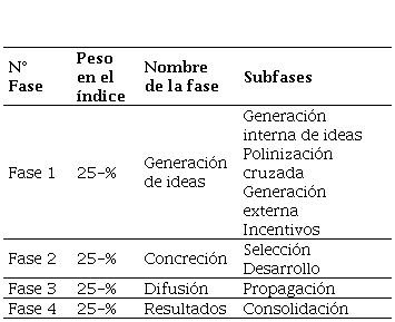Fuente: elaboración propia.Table 4. Index and weights by phase of the innovation value chain