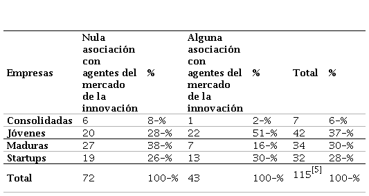 Fuente: elaboración propia.Table 5. Association of innovation market agents according to company age
