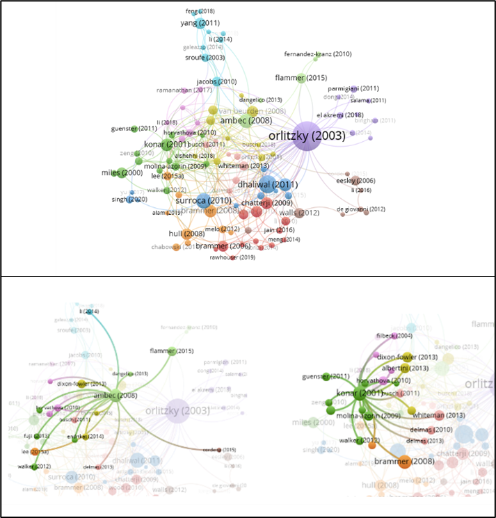 This study conducted a scientometric review of the existing theoretical and empirical literature on the relationship between financial and environmental performance. By employing social network analysis, it was possible to identify specific research trends in the field. To source research papers, the Scopus database was used given its solid reputation (Maditati et al., 2018). Moreover, VOSviewer software version 1.6.18 was used to construct networks based on author citations. This tool has been successfully applied in several studies to identify the most relevant research trends across various financial domains (Marquez-Cardenas et al., 2022; Mejia-Escobar et al., 2020; Ramirez et al., 2022). The following was the search question employed in this study: (“financial performance” and “environmental performance” or environmental).
