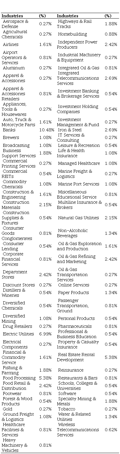 Tabla 1. Participación de las empresas en las diferentes industrias