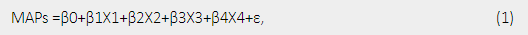 Multiple linear regression was implemented after testing classical assumptions about the data. Said regression was also employed to analyze contingent factors that affect MAPs in Indonesia. The regression equation was the following (Equation 1):