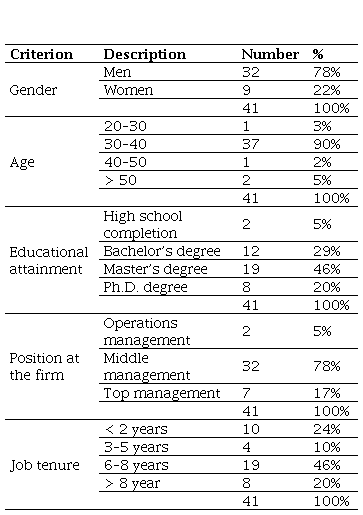 Source: Own work.The research data was collected by distributing a questionnaire on Google Forms among the management of 125 manufacturing companies in Indonesia. A total of 41 responses were received. Tables 1 and 2 detail the characteristics of the respondents and their companies.