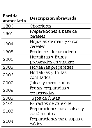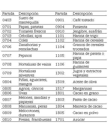 Fuente: elaboración propia. Nota: Para una mayor descripción de las partidas arancelarias, ver el sistema arancelario armonizado.