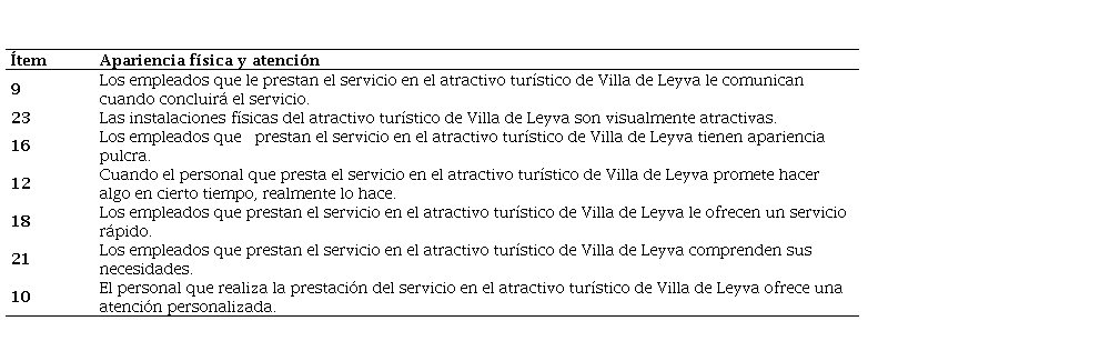 Conclusions: Tourist attractions in Villa de Leyva have two weaknesses: lack of knowledge about the quality of their service provision and lack of control when they provide their services. Therefore, this study infers that the perceived service quality of these attractions can be modeled as a multidimensional construct with three factors: (I) security and reliability; (II) physical appearance and attention; and (III) empathy and willingness.