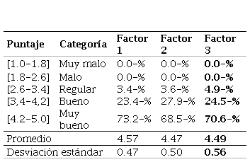 Un desglose de los ítems para cada factor se muestra en las Tablas 4, 5 y 6, respectivamente.