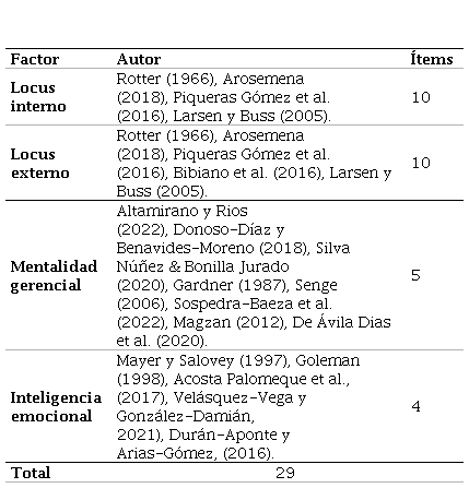 Debido a esto, en la literatura se ha identificado que variables como el locus de control refleja el grado de percepción que tiene el individuo frente al éxito o fracaso de su conducta como dependiente de sí mismo y del contexto; de esta manera, los empresarios con alto grado de locus de control interno son significativamente más activos y luchan con más fuerzas para conseguir los logros personales, además, existe un condicionamiento positivo de la motivación hacia el emprendimiento, lo cual demuestra las relaciones significativas entre el locus de control y el emprendimiento de los estudiantes universitarios (Valencia-Arias et al., 2023; Mababu Mukieur, 2009).