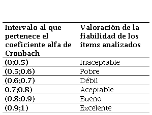 Fuente: elaboración propia.Table 3. Assessment of item reliability using Cronbach’s alpha coefficient