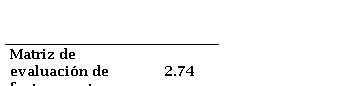 Dicho autor sostiene que no importa cuántos elementos se incluyan en una matriz MEFI, pues el puntaje total ponderado puede variar desde un mínimo de 1.0 hasta un máximo de 4.0, con un promedio de 2.5, según David (2008). Las organizaciones con puntajes totales ponderados significativamente por debajo de 2.5 se consideran internamente débiles, mientras que aquellas con puntajes significativamente por encima de 2.5 se consideran internamente fuertes.