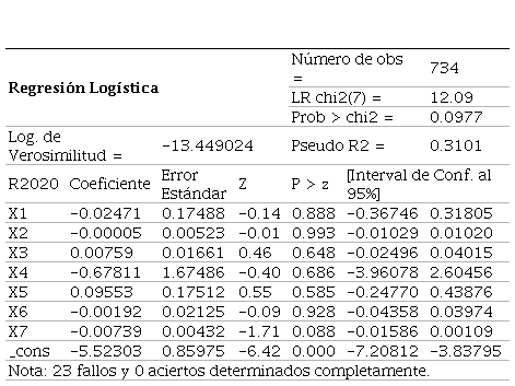 Table 16. Logistic regression results for the probability of insolvency in the Colombian construction industry (2021)