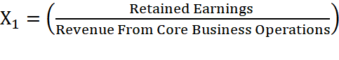 Variable X1 measures the proportion of prior-year results (retained earnings or accumulated losses) relative to total sales. A higher value indicates that retained earnings represent a significant portion of sales volume for the period analyzed. The calculation structure for Variable X1 is presented in Equation (1)