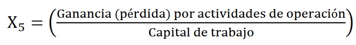 (4)Variable X5 serves as a measure of operating efficiency, comparing operating income to net working capital. This ratio reflects how effectively the firm’s operations generate earnings per unit of working capital. The calculation structure for X5 is presented in Equation (5)