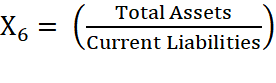 (5)Variable X6 measures the ratio of total assets to current liabilities, indicating the firm’s capacity to meet short-term obligations using its total asset base. The calculation structure for X6 is shown in Equation (6)
